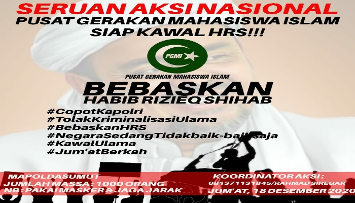 Untuk diketahui, rencananya sejumlah elemen yang tergabung dalam Pusat Gerakan Mahasiswa Islam (PGMI) di Medan rencananya akan menggelar unjukrasa "Bebaskan Habib Riziek Shihab".