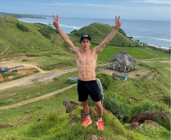 "Confirmed: @sirkuit_mandalika_id keren banget! Enggak sabar mau balap motor di sini," tulis Rins dalam fotonya di sirkuit.