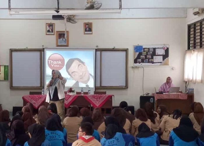Pihak SMA Negeri 107 Jakarta menghadirkan Dr (C) Vita Ika sari MPd dari Universitas Pancasakti Tegal sebagai narasumber dalam sosialisasi "Bahaya Narkoba bagi Remaja".