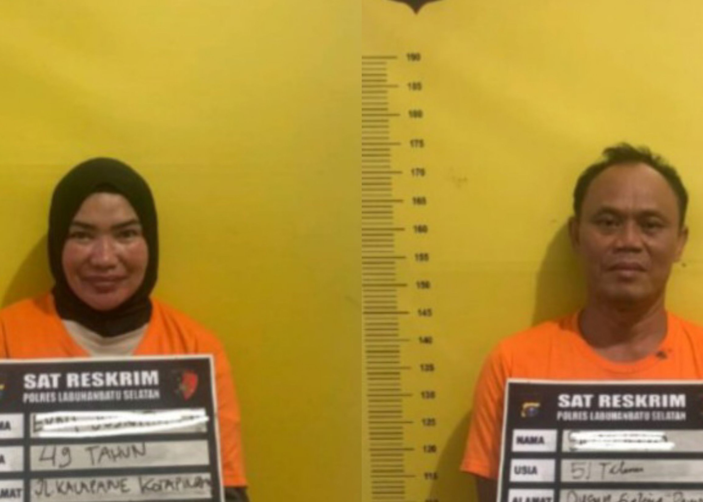 Dua orang tersangka pemerasan di Kabupaten Labuhanbatu Selatan (Labusel), Sumut, yang salah satunya menyamar sebagai Jaksa Kejagung. (Dok. Polres Labusel)
