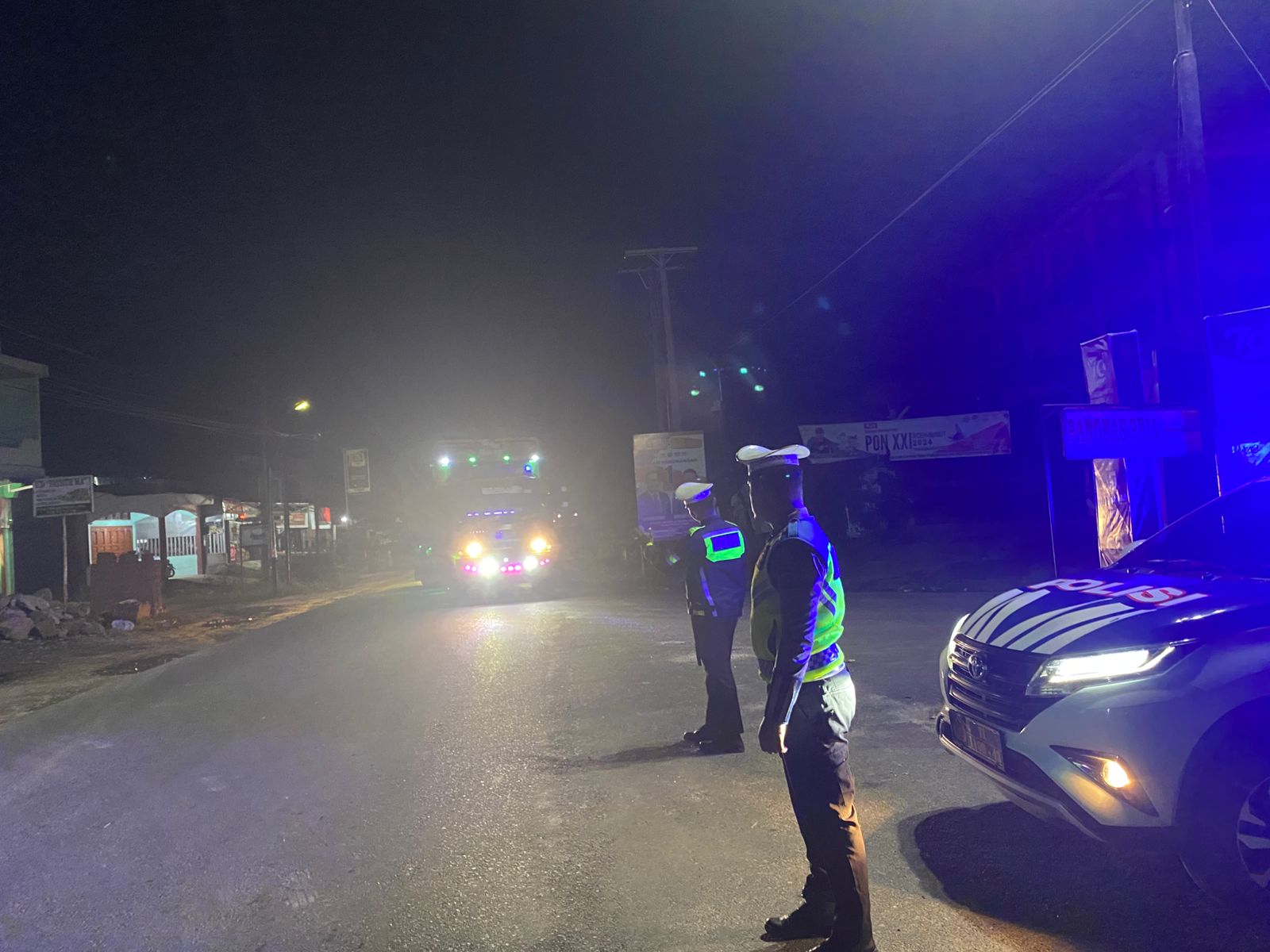 Satlantas Polres Toba Patroli Blue Light Malam Hari