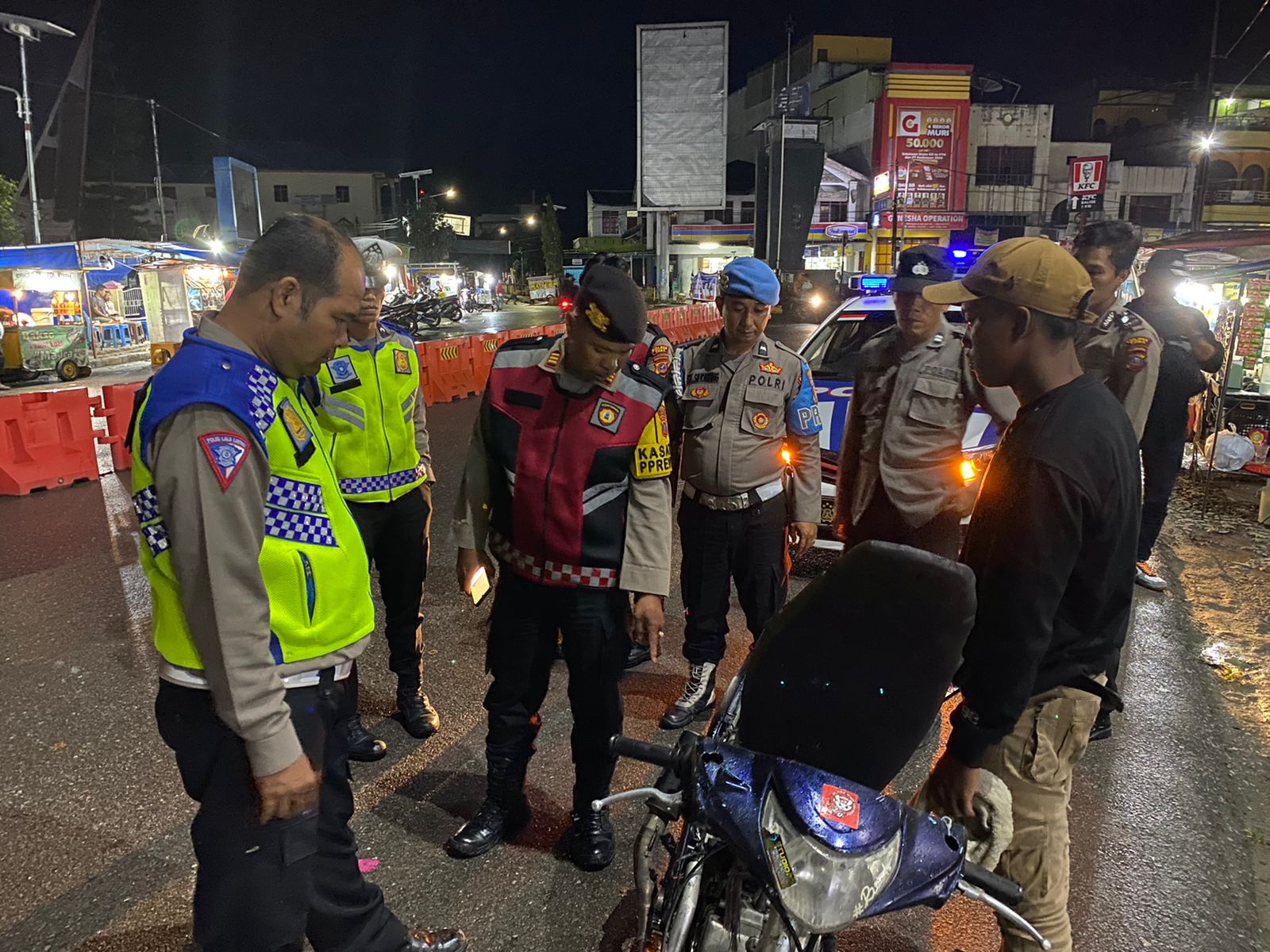 Dalam kegiatan razia ini, personel secara ketat namun humanis saat melakukan pemeriksaan kendaraan yang melintas serta memeriksa barang bawaan para pengendara.