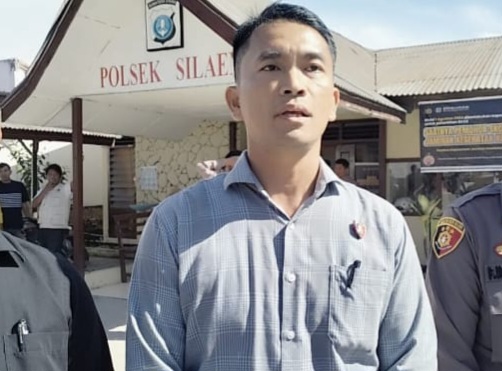 Kapolsek Silaen Iptu P Manurung ikut mengamankan terduga pelaku dengan membawa ke markas Polsek Silaen sebelum dibawa ke Mapolres Toba di Porsea.