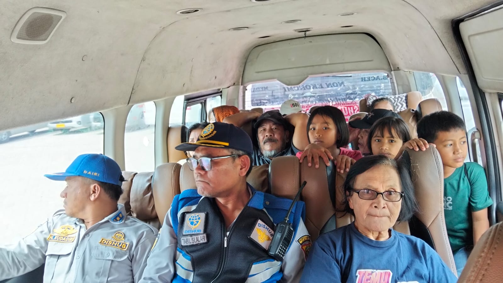 Setiap kendaraan dilengkapi stiker “Shuttle Bus Aquabike 2024” dan petugas pemandu untuk memastikan kenyamanan dan kelancaran perjalanan.