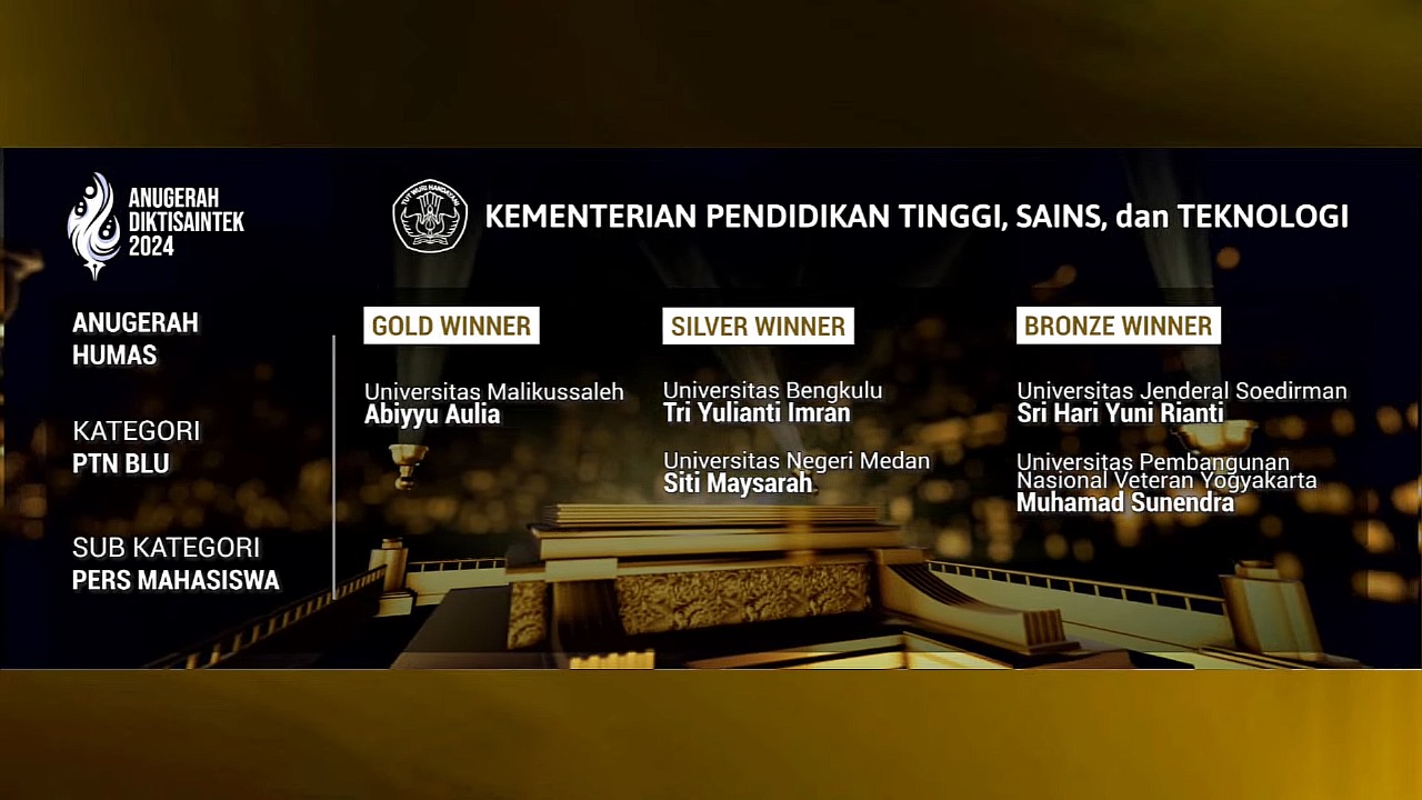 Siti Maysarah, anggota UKM Persma Kreatif Unimed, berhasil meraih medali perak pada Anugerah Diktisaintek 2024 yang diselenggarakan Kemdiktisaintek.