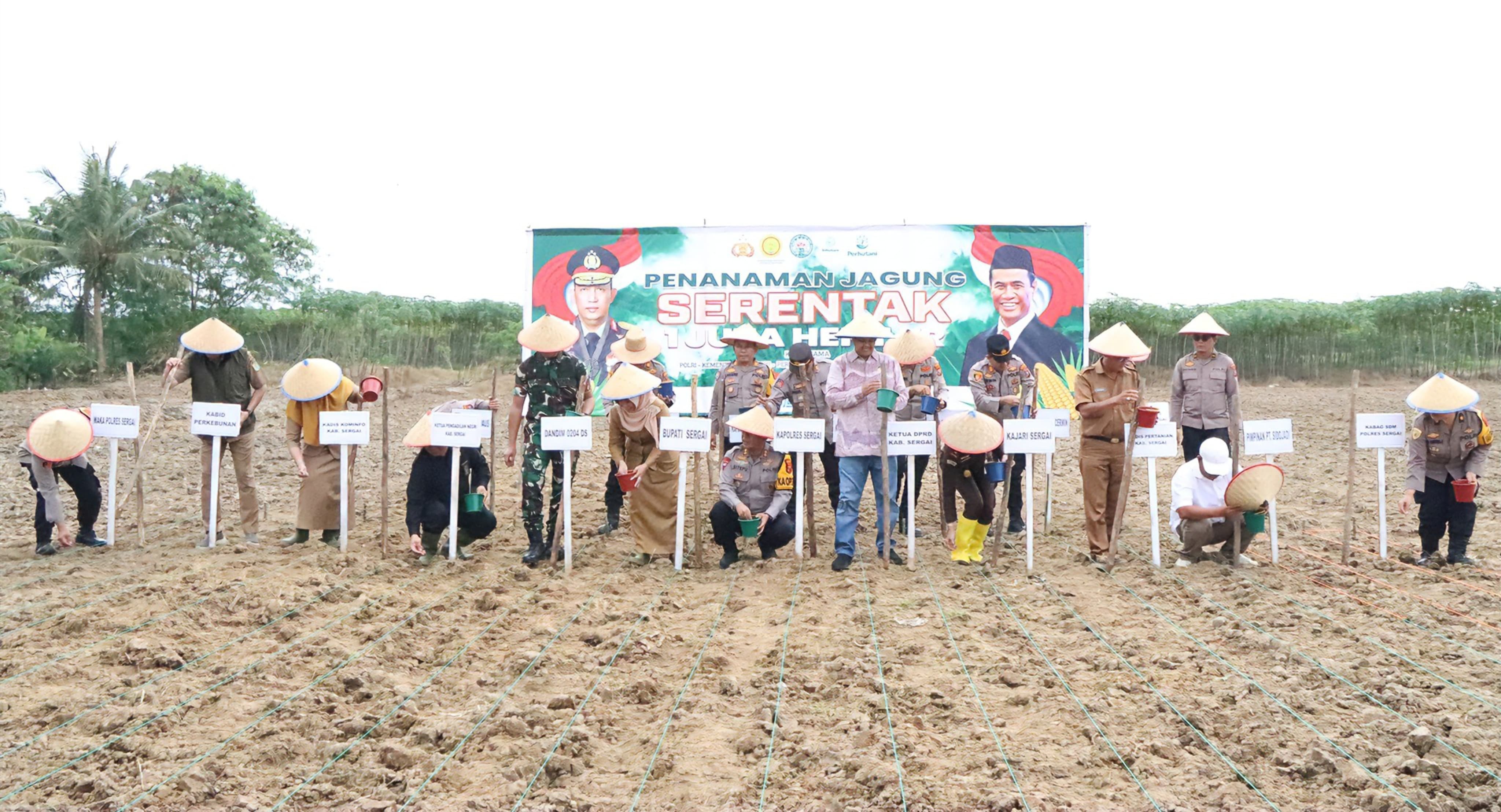 DAILYKLIK.ID, Sei Rampah – Polres Serdang Bedagai (Sergai) bersama Forkopimda mengadakan kegiatan penanaman jagung serentak sebagai bagian dari program ketahanan pangan nasional. Kegiatan ini berlangsung di areal PT Sidojadi Kebun Sei Parit, Kecamatan Sei Rampah, Kabupaten Sergai, pada Selasa (21/1).