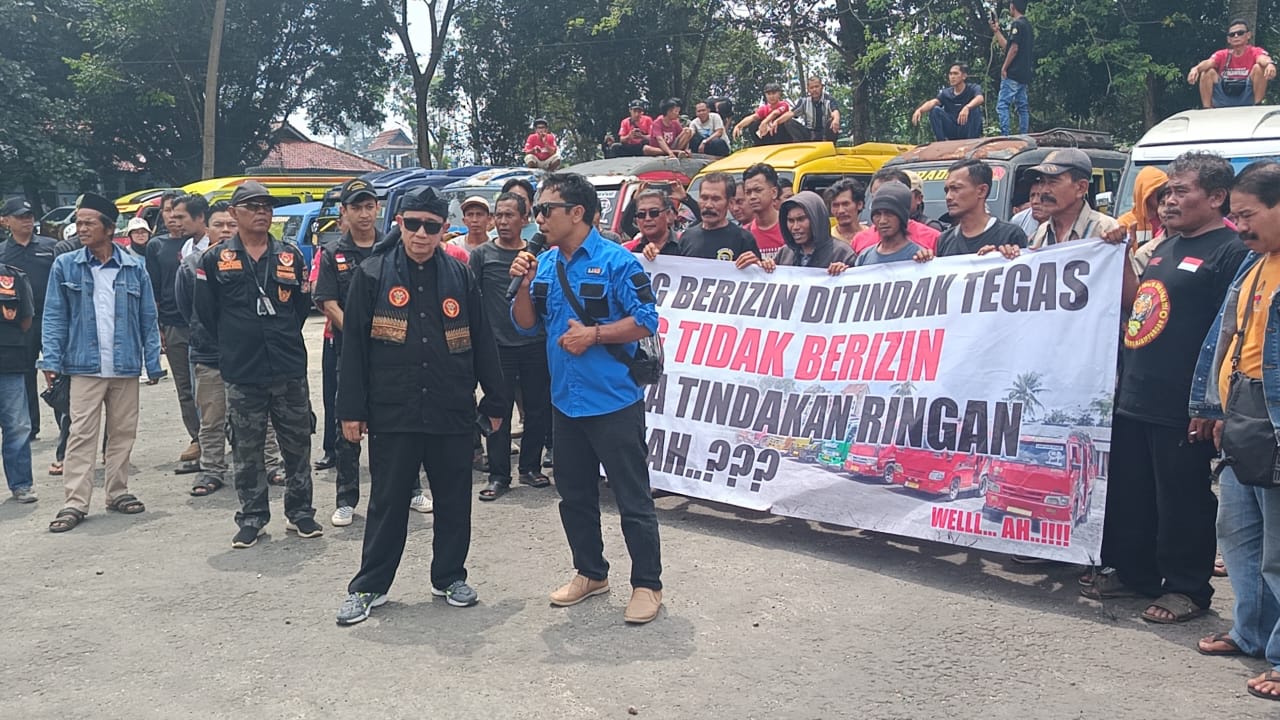Supir Elf Pajampangan Gelar Aksi di Kantor Dishub Sukabumi, Tuntut Penertiban Travel Gelap