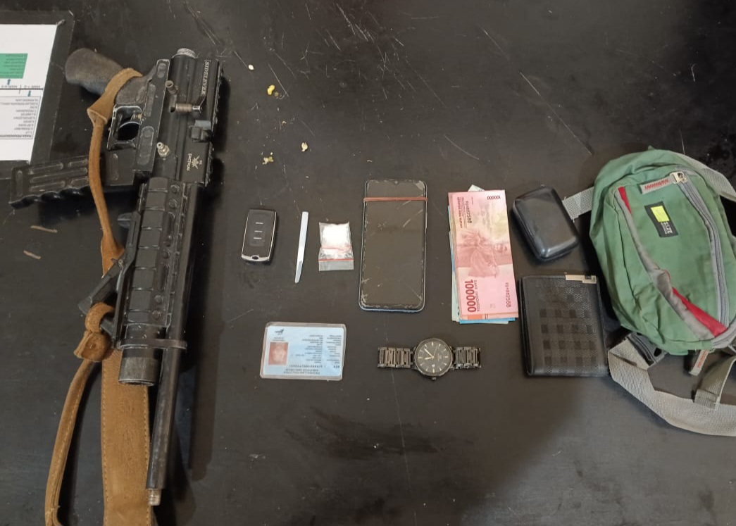 Dalam penangkapan, Polsek Bosar Maligas, dibantu TNI AD Koramil 07 Pasar Baru, menemukan berbagai barang bukti. Salah satu barang bukti yang ditemukan adalah satu pucuk senapan berwarna hitam.