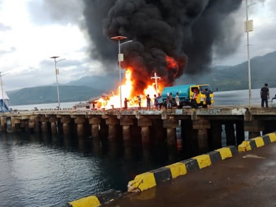 Kapal Pengangkut BBM Terbakar di Pelabuhan Larantuka, NTT