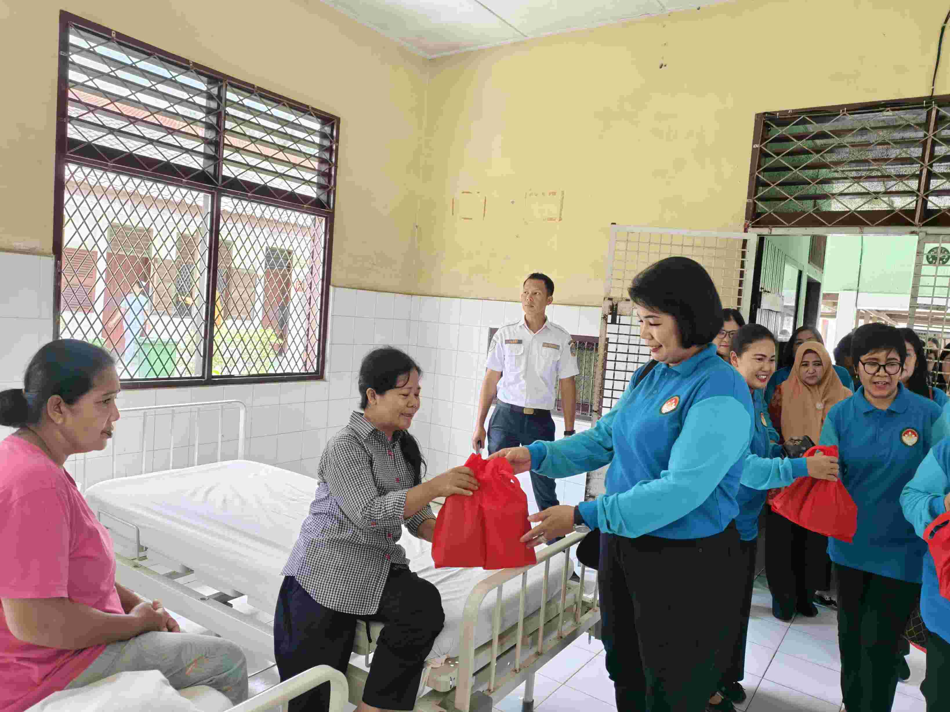 Dalam kunjungan tersebut, para anggota DWP menyapa dan membagikan bantuan secara langsung kepada para pasien dengan penuh kasih dan empati.
