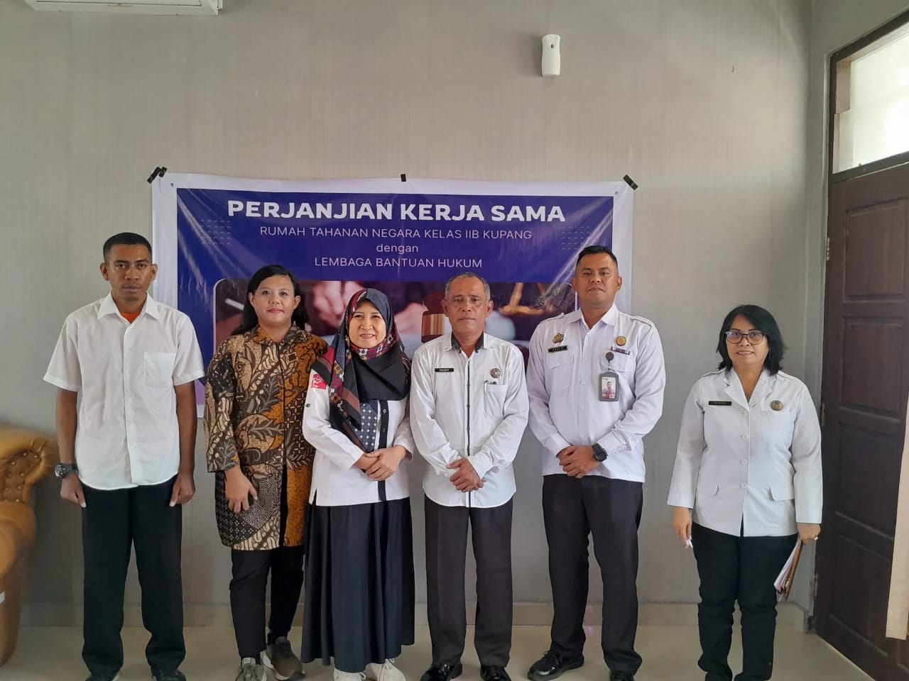Ketua LBH Surya NTT, E. Nita Juwita, berpose bersama Kepala Rutan Kupang, Jumihar Bachtiar Sinurat dan jajarannya usai menandatangani MoU.