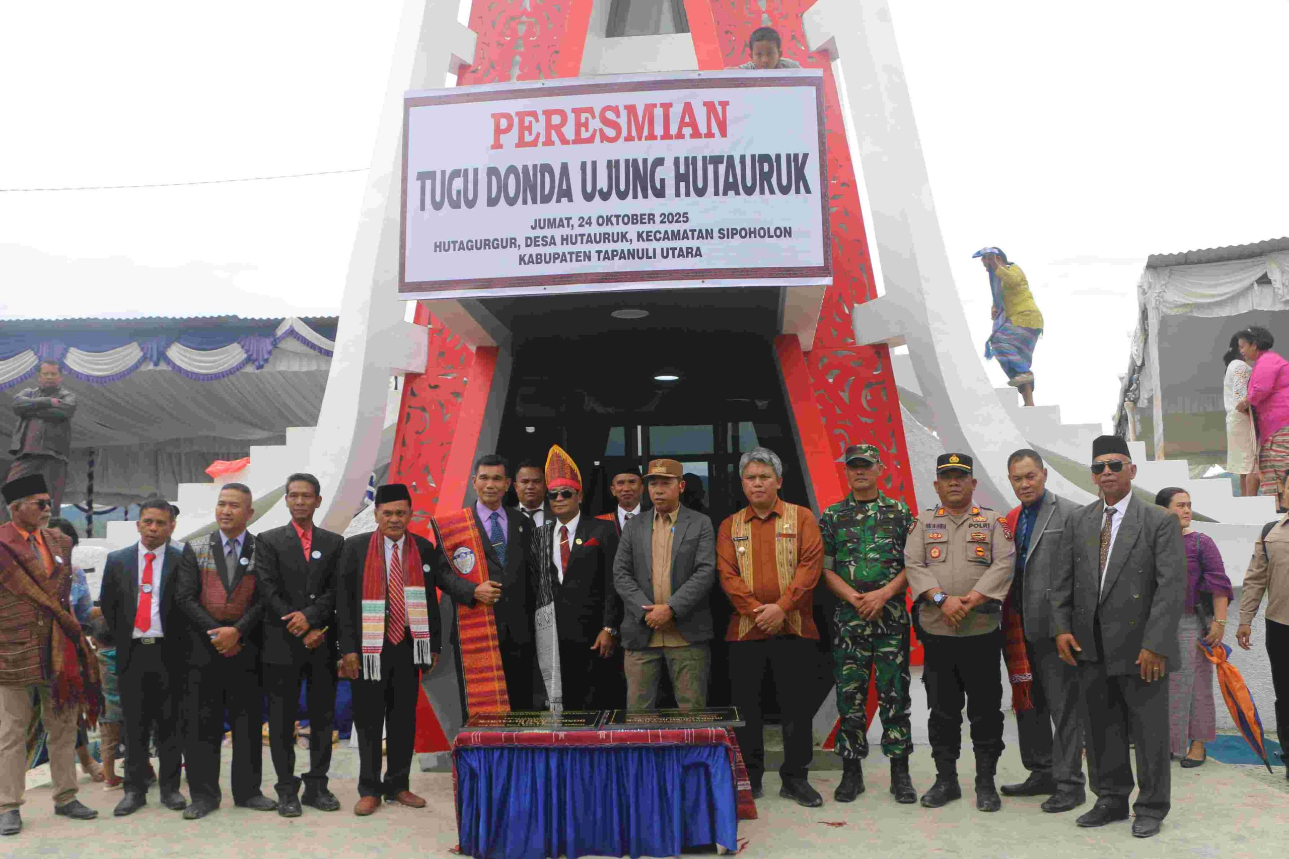 Dailyklik.id, TAPANULI UTARA – Bupati Tapanuli Utara, Dr. Jonius Taripar Parsaoran Hutabarat bersama Wakil Bupati Dr. Deni Parlindungan Lumbantoruan, menghadiri sekaligus meresmikan Tugu Donda Ujung Hutauruk di Hutagurgur, Desa Hutauruk, Kecamatan Sipoholon, Jumat (24/10/2025).