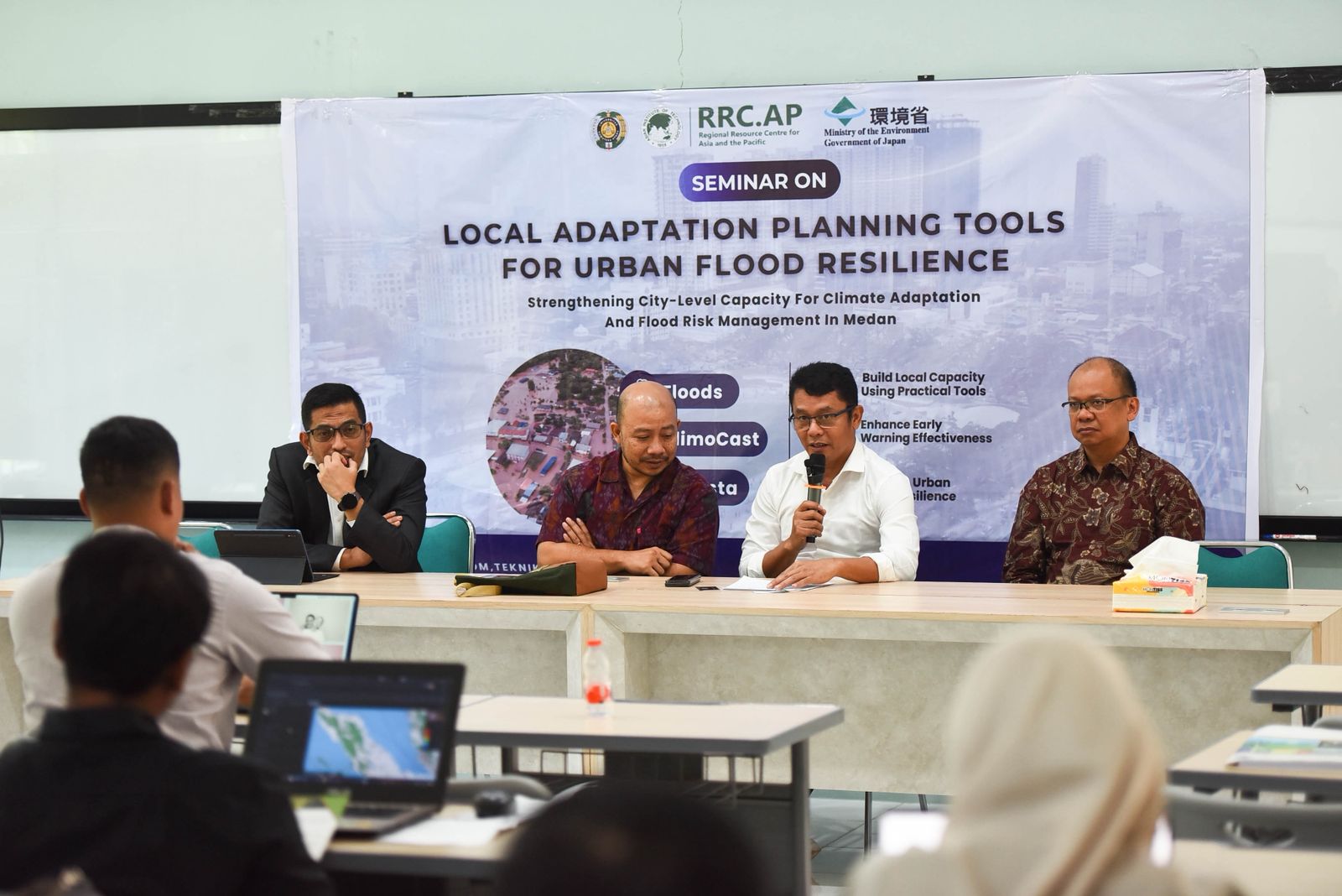 Direktur Asian Institute of Technology (AIT) Thailand RRC.AP, Dr. Guilberto Borongan, menekankan pentingnya pemanfaatan data dan teknologi adaptasi dalam mendukung perencanaan pembangunan kota. Ia menyebutkan bahwa penggunaan alat berbasis data dapat membantu pemerintah daerah dalam memodelkan risiko dan meningkatkan kesiapsiagaan terhadap bencana. “Melalui penggunaan tools adaptasi ini, kota dapat lebih siap dalam memprediksi, merencanakan, dan memitigasi risiko banjir secara terukur,” katanya.